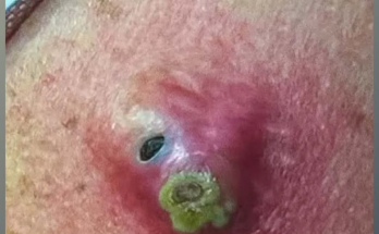 Skin lesions that appear red, swollen, and painful—especially those with a visible central opening or discharge—can be alarming. The image provided shows an inflamed area of skin with surrounding redness, …